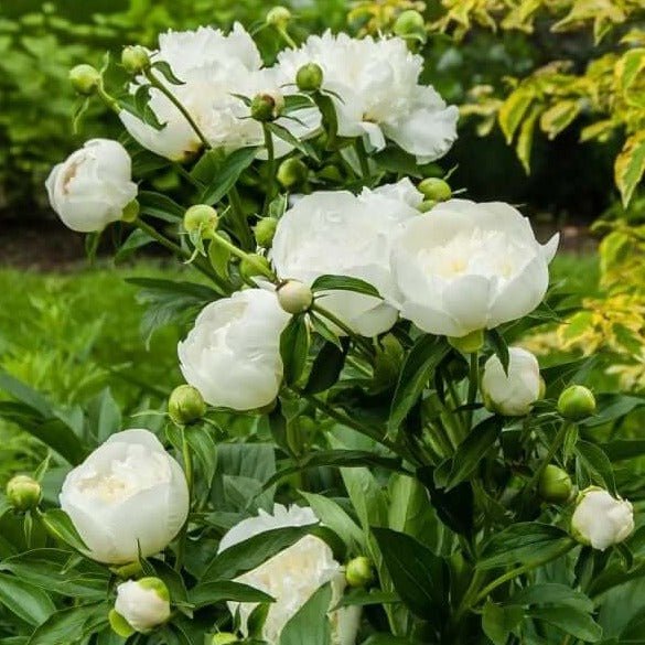 Bujorul lactiflora "Duchesse de Nemours" înflorește abundent în lunile de primăvara și început de vară. Produce flori elegante în nuanțe de alb-crem ce rezistă înflorite aproximativ 7-10 zile.