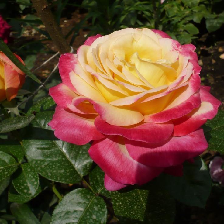 Culoare : Bicolor Utilizare : Solitar, Flori taiate Inaltime : 2,0 - 2,5 m Latime : 1,0 - 1,5 m Expunere : Soare Perioada de inflorire : Din luna Mai pana la inghet , Inflorire repetata Parfum : Da
