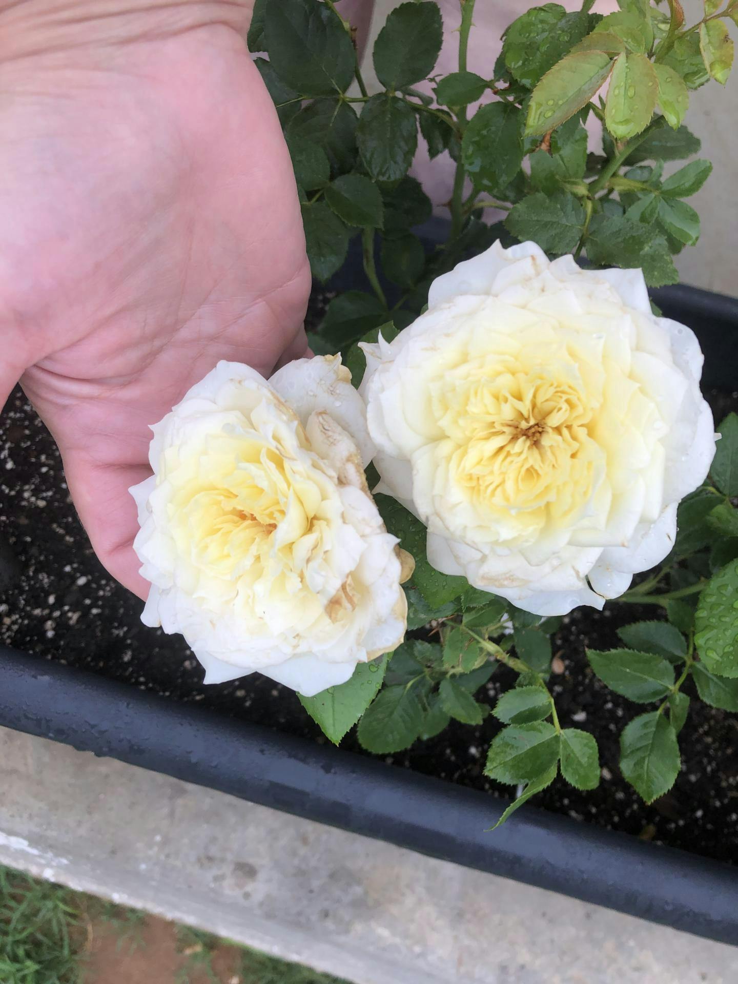 Florile sale de o eleganță aparte, foarte generoase, cu un diametru de 11 cm, scăldate în nuanțe de alb cu centrul galben și un parfum divin vor fi vioara întâi pe scena principală a grădinii tale unde mai sunt, probabil, și alte nume celebre din lumea fascinantă a trandafirilor.