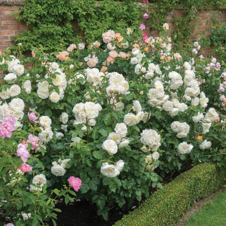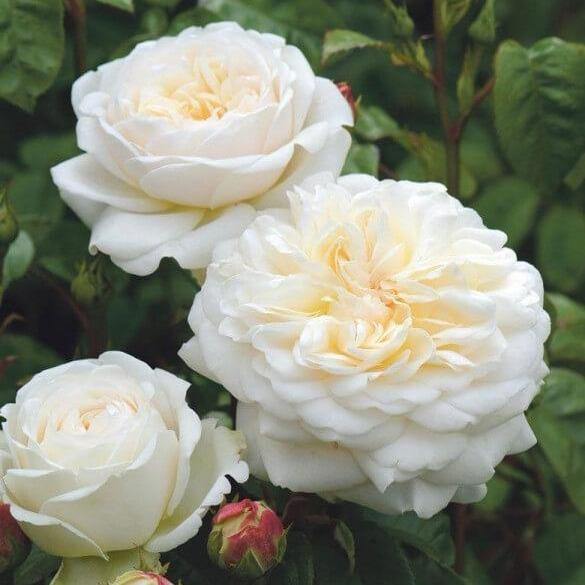 În rest, doar liniște. O liniște în care să admiri pe îndelete puritatea florilor mari formate din aproximativ 100 de petale fiecare, flori pictate într-o nuanță de alb pur cu tente de galben în centru. O liniște în care să te bucuri de parfumul suav, cu note fructate ce vin să întregească perfecțiunea acestui trandafir ce va continua să înflorească iar și iar pe toată perioada sezonului.